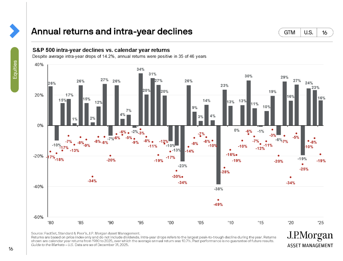 Along the way, markets were tested more than once. A sharper sell-off in April reminded investors how quickly sentiment can shift when uncertainty rises, while a renewed bout of volatility in mid-November reflected ongoing sensitivity to interest rates, valuations, and positioning after a strong run. In both cases, those drawdowns proved short-lived, but they underscored an important point: even in strong years, markets rarely move in a straight line.